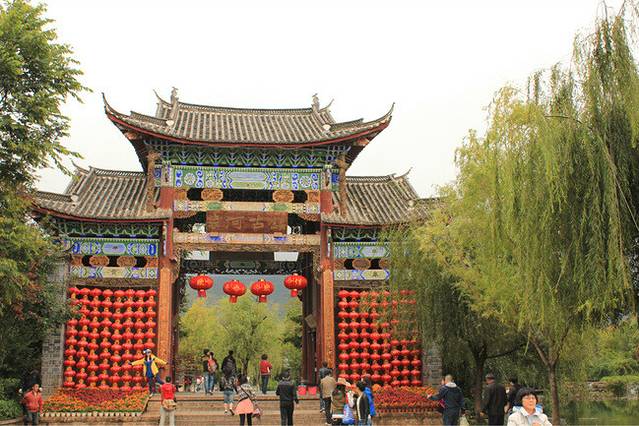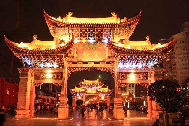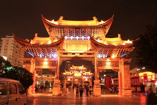 9月26日,飞机到达昆明已经是傍晚时分,对于这座西南的省会城市,没有太好的印象。可能是老城区,基建没搞好,所以沿途经历了无数的堵,昆明的空气质量也不好,天空如同大多数省会城市一样,略显污浊。好在当晚去大理的火车是23:55,所以时间依旧大把。到了火车站,取了7号回广州的卧铺以及当晚去大理的卧铺票,还剩下大概6小时的富裕时间。向当地人打听了下附近的去处,于是金马碧鸡坊成了首选。