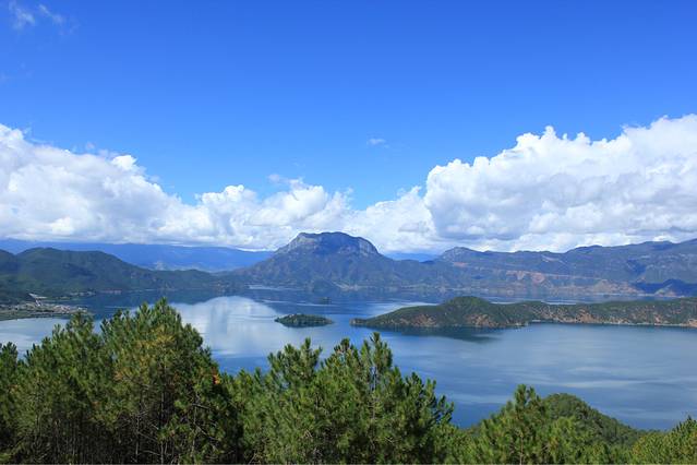经达6个多小时的颠簸,我们终于到达了圣湖,天空也由阴雨连绵转变成了大好的晴天,这跟我一路的祈祷有关吗?哈哈哈.....当第一眼看到圣湖的时候,那种震撼无以言表,泸沽湖绝对不虚此行!!!
