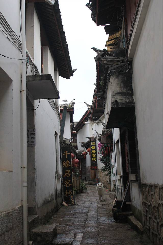 清晨丽江从疯子的视角,各种角落的呈现,首先是幽静的巷子里,一条雪白的大狗格外引人注目,所以咔嚓一张
