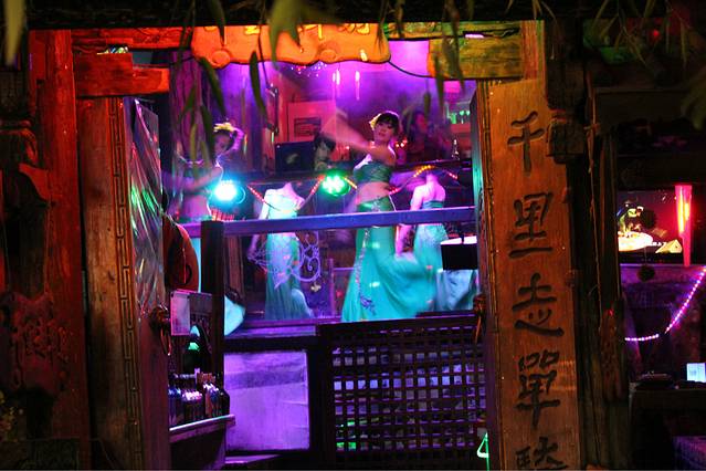 在我看来,每一张照片,好的或者坏的,都有它的来历和存在的理由,正如下面这张“千里走单骑”,里面带有少数民族特色的舞蹈的确很引人入胜,可是最终我未能走进去好好的欣赏这段表演。都说,到了丽江,不进酒吧,等于没有来过丽江,那么看来这次,我是白来了,不过也好,这次的彩云之南,遗憾真的还挺多。所以下次再去才有了更充分的理由,我一定会再次踏上这片神奇的土地!