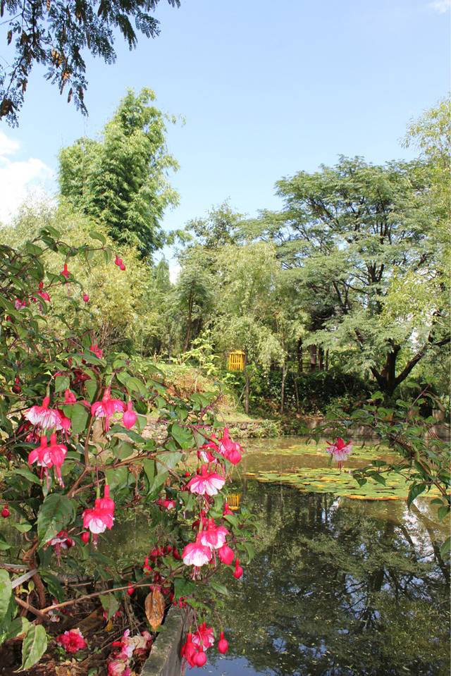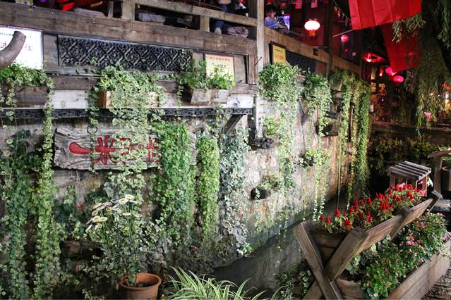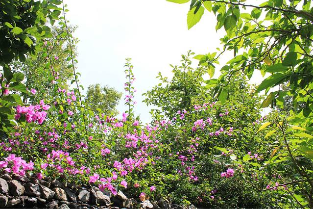 也就有了这一张,一米阳光酒吧下面的蔓藤,潺潺的流水,以及叫不出来的花之星星点点。
