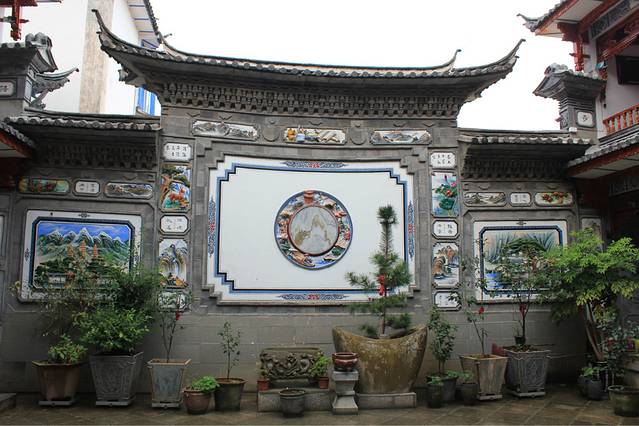白族的民居以及风俗的体现,白族的民居特色就是三厢一照壁,在白族,女性的权利还是很高的,倒是男人的生活略显“小资”,跟我们一起的阿朋哥(白族对男性的称谓)介绍道,在白族,下田种地都是白族女人做的事情,阿朋们只需要会“琴棋书画”和在家照顾小孩就可以了,听了我们直乐。在白族,要是一个男人抽不起好烟,喝不起好酒,他的老婆就要受到当地人的鄙视,认为这个女人没有能力让自己的老公过上体面地生活。哈哈,在白族,敢情这世界完全颠倒了,广大男性同胞们,倒插门去白族吧,白族女孩简直就是你们的福音!!!