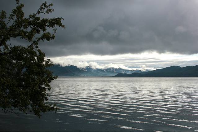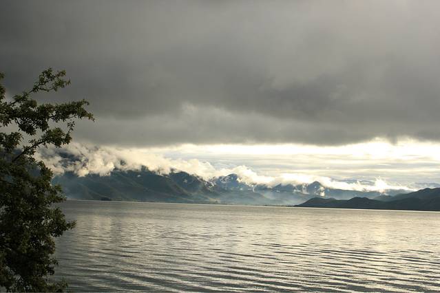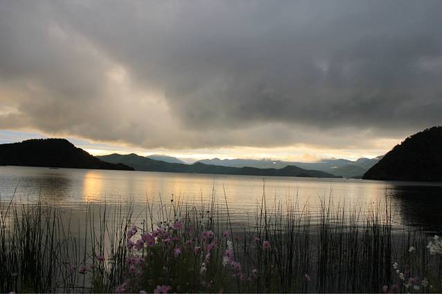 回归正题,当33个来自于五湖四海的朋友于30日上午在丽江的皇冠酒店门前登上了旅游大巴,泸沽湖之旅便开始了。坦白说,最初的心情有些失落,因为车窗外的雨有越下越大的趋势,内心想起了去年张家界天门山上,一片雾蒙蒙的景象。所以内心曾无数次的祈祷老天一定要给力,不是谁都有那么富余的时间来这片彩云之南。