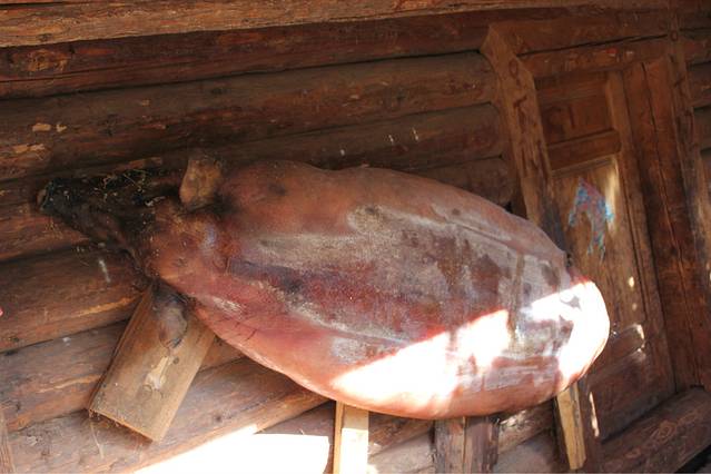 这是泸沽湖特有的猪膘肉,据说能放一二十年。