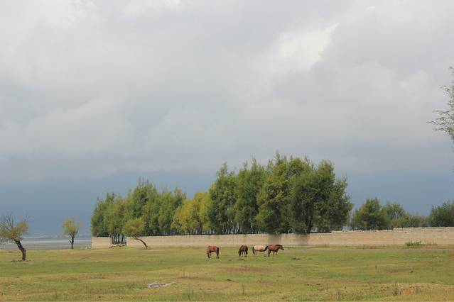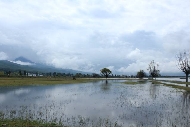 到了拉市海,天气忽然晴了,好一片草原之势,此时此刻,想起了天苍苍野茫茫,风吹草低见牛羊,当然,夸张了些,毕竟只有马!