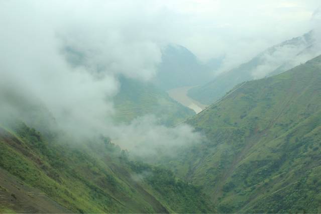 这是车窗外的景色,云雾就在山间缭绕,金沙江就在不远处流向更远的地方...