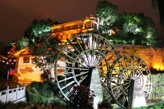 不一会儿功夫就走到了丽江标志的景点--水车旁边,此时当晚的丽江之旅告一段落。让喧闹继续喧闹,狂欢继续狂欢,而我将回归客栈,品一杯酒,继续看我的“百年孤独”,题外话,这本书真的很不错,就是名字太绕了。有兴趣的可以阅读一下。