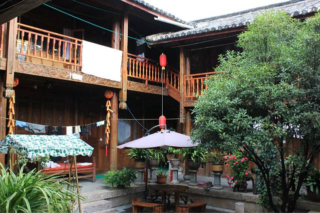 次日,我已经等不及他们两对儿,九点钟对我来说确实太晚。于是,大清早一个人去感受丽江的宁静,此图为我所居住的吕家四合院,店主东北吕姐的联系电话:0888-5183986,手机:13688764167,客栈地址:丽江古城七一街兴文巷101号