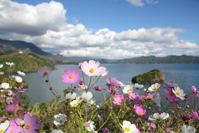 遍地的格桑花,点缀这这片彩云之南,后续泸沽湖的照片中,你会发现这种花无处不在,话说这是一种殉情花,代表了壮烈的爱情...