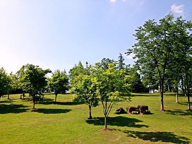 虽说,火车上最终跟别人挤了挤,并没有一直站着,可是长途跋涉的艰辛还是摧毁了疯子的意志,于是20日清晨6点左右,疯子决定在义乌下车。此前没有做任何攻略,唯一知道的就是义乌小商品市场,这也是决定下车的原因,既然来了,就去看看吧。一出站,火车站旁边的公交总站,就有车带你去小商品市场,下了公交,疯子被眼前的批发市场惊呆了,原因就是规模真的太大了,完全颠覆了疯子之前的想象,有兴趣的朋友可以自行去考察,但是一定要保存好体力,那里随便一个区,应该需要你一天的时间吧!鉴于体力透支,疯子在附近的一个公园走了一走,就找店入住了,以下是手机拍摄的公园一角,说来惭愧,我连公园的名称都不知道,暂且就称之为街心公园吧,哈哈哈!