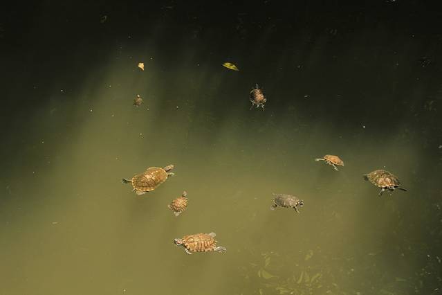 这些放生池的乌龟,未免也太惬意了吧 : )