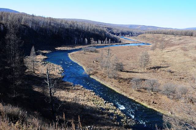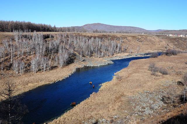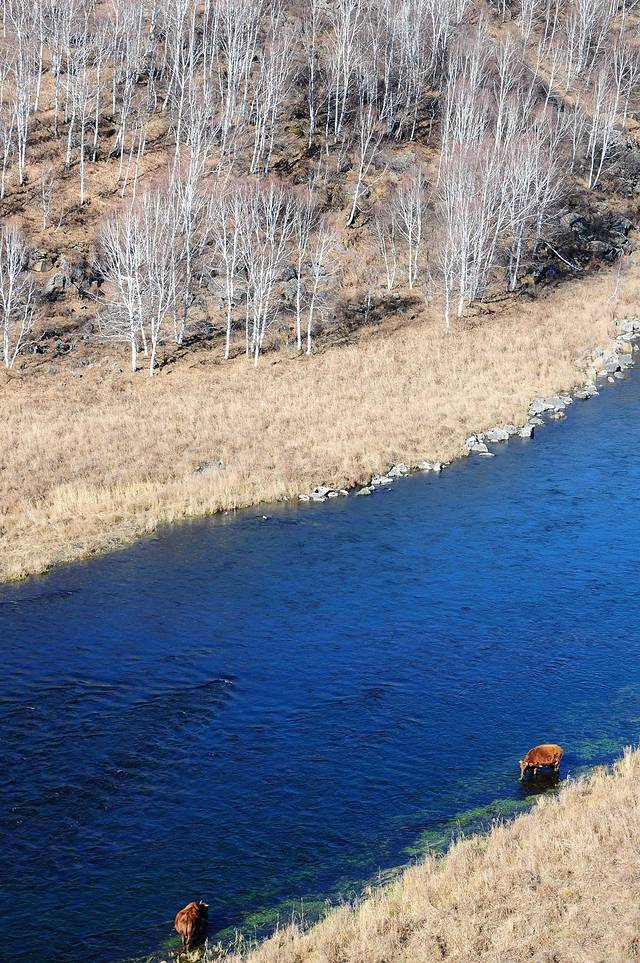 这就是大家说的不冻河吧?即使到了严寒的冬天,零下三、四十度也从不封冻,故称之为“不冻河”。还有一群不冻牛。