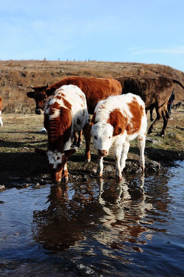 因为好运气碰上了好天气,河水才有这般深蓝。虽然只拍了两张照片,手已冻僵。可是河水里的牛正在悠闲的吃草。很喜欢宁静的景致内的小动物,他们为画面增加了动感,但是整体又那么和谐。