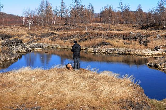 阿尔山天池是一个火山天池,去天池边观景需要爬800-900层台阶翻过一座小山。本以为山顶能够一览无余这汪碧水,可惜山顶树木高大参天,遮挡太多,只能站在观景台上近观。其实阿尔山水景很多,不必因为这个天池看不到全景儿懊悔,继续往前走,前方美景无限。因为阿尔山的秋天来的更早,黄金松树和桦树i已经光秃,我和C叔一路感叹,若是提前一周来,该是多么梦幻的景象。
