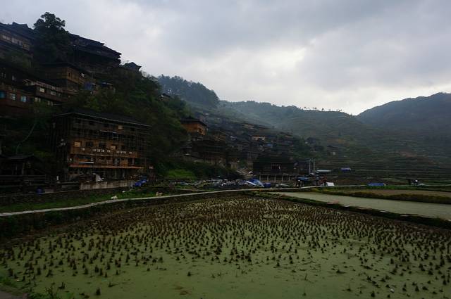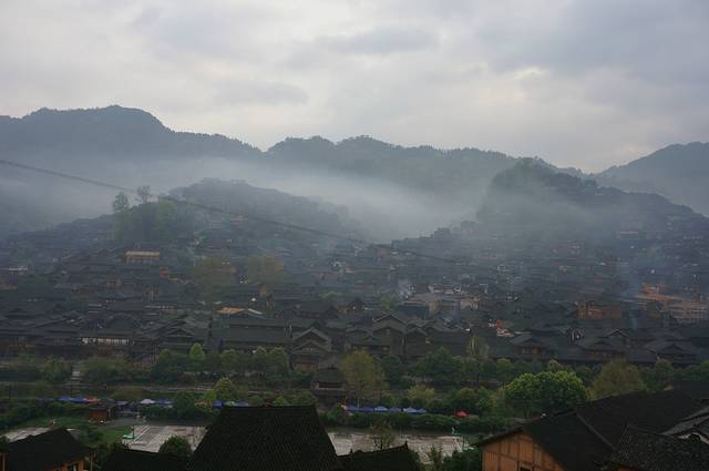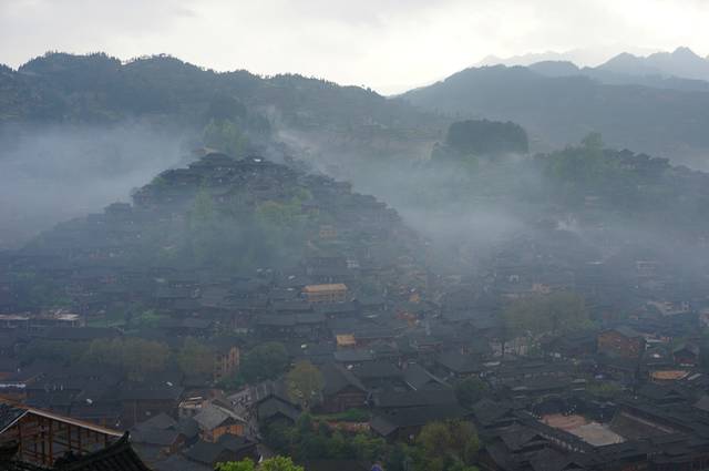 早上的苗寨,云雾缭绕。