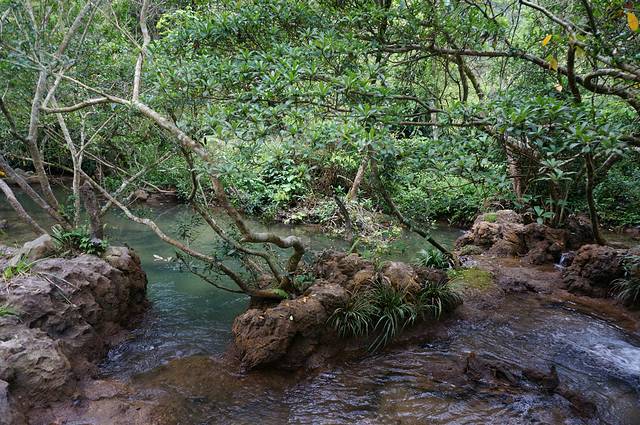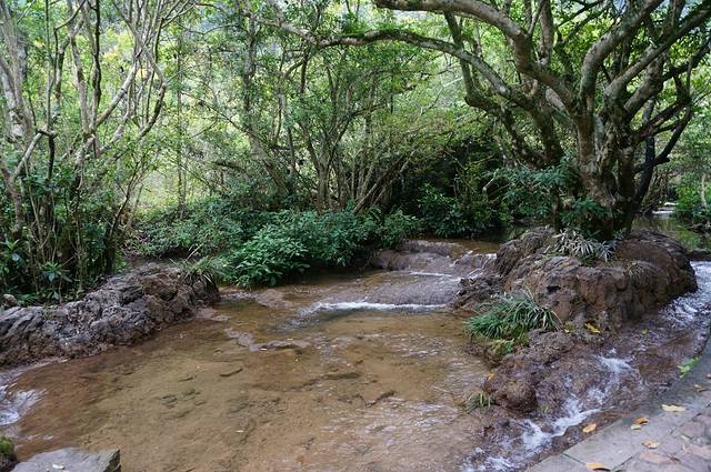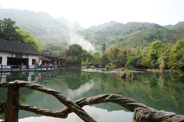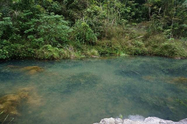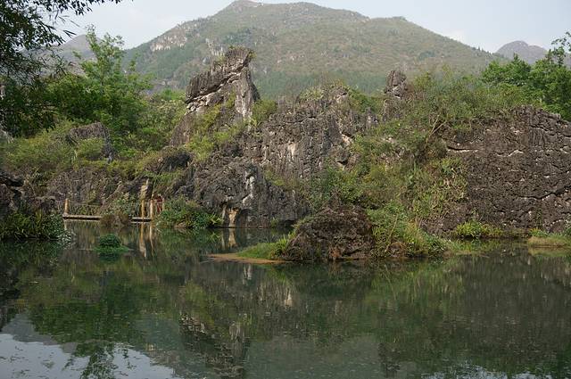 早上去神州租车提车,开上我们一路的别克。出发后发现我的手机GPS没有信号,罗爸的手机又没有下载地图。慌乱中我指挥罗爸朝一个方向开,凭之前看到地图感觉不是开到黄果树就是苗寨。结果我们在贵安大道一直开,中间又拐到高速,还算顺利达到黄果树,一个多小时路我们开了3个多小时。直接先去黄果树鼎丰大酒店安顿下来。酒店凉台是露天的,直接看到山,清净的很。安顿好后我们在旁边吃饭-西江狗肉火锅。但是这个狗肉极其的清淡,罗爸一直喊贵州盐真的这么贵吗?这么不舍得放盐啊!吃完饭直接开车去景区,黄果树3个主要景点,陡坡塘,天星桥,黄果树大瀑布。下午我们就逛了陡坡塘,天星桥。因为没看路标。罗爸在大山中转了2圈。这美景啊