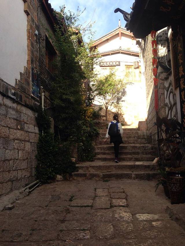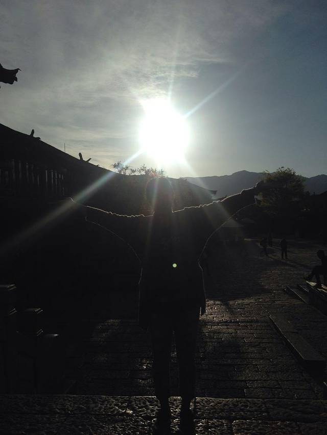 手残党再次逆光拍。。。。。恩。。。。原谅我吧,后面的照片还有很多逆光拍的。。。早晨的丽江非常美,还没有很多的旅行团杀进来,拍照都是静静的真的很棒,阳光也很美!这次去丽江就住错地方了住在了古城外面的旅店虽然环境不错,但是。。。!真心不方便,晚上去完酒吧,还有随时想休息。。。都超级不方便!大家千万不要相信什么观山景观房间!这样的大部分都不在古城里面!而且去住店还要爬到半山腰!简直就是坑呀!所以在丽江住的地方就不给大家推荐了!到是在游古城的时候发现个店,真心不错,后面会有介绍!