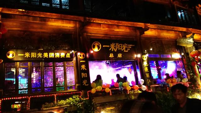 看看。。。。有团购哦!直接去。。。。价格真心不便宜。。。。但是去丽江就一定要去酒吧么!如果去一米阳光就去总店吧,其他的。。。真心就是糊弄。。。大家可以再外面观望一下看看你里面节目怎么样然后在选择进去,千万不要因为酒水便宜就去呀。。。。那就是传说中的坑爹。。。。唱的歌简直不能听。。。。恩恩。。。