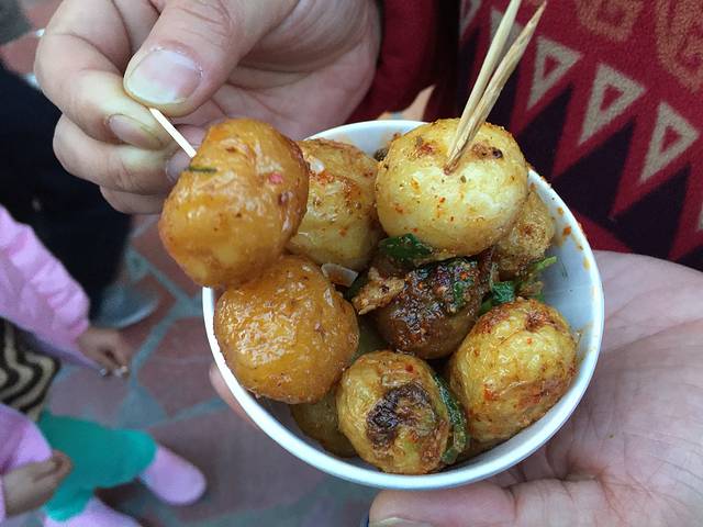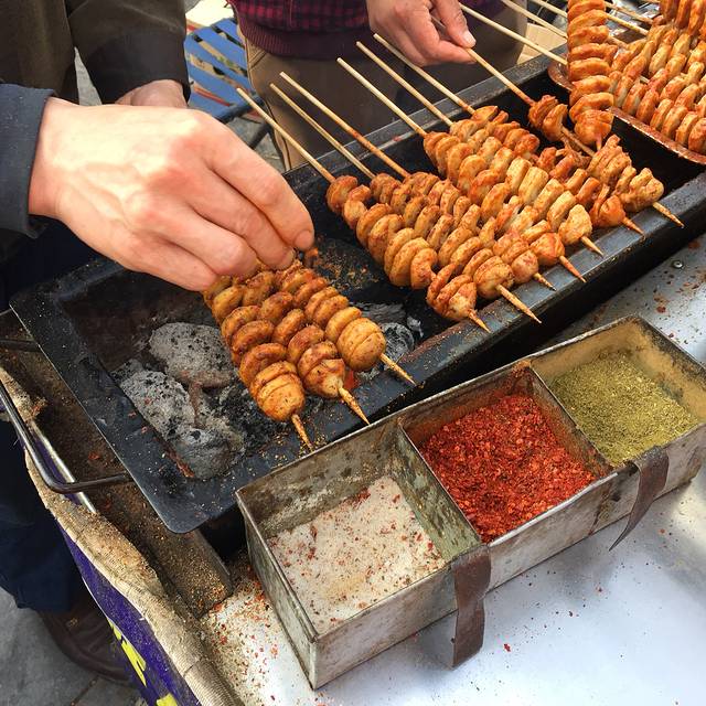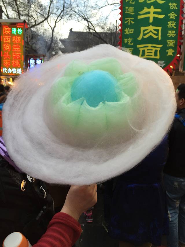 鼓楼的后面就是大名鼎鼎的回民街,和大多数夜市一样,脏乱差。两样不同,就是人多、价格贵。从头走到尾,西羊市的小巷子走没挤进去,继续向后走,来到了大皮院巷子,这里人少些。在老潼家点了一晚羊肉泡馍38元。掰了20多分钟的馍,又等了五六分钟,终于吃到了鼎鼎有名的羊肉泡馍了!味道呢?我和老公都很喜欢。但是估计好多人都吃不惯。羊肉泡馍好多家都卖,什么老孙家、老米家的、老……的。喜欢哪家就去哪家吧!我们随便吃了一些小吃,也就那么回事吧!图个热闹。