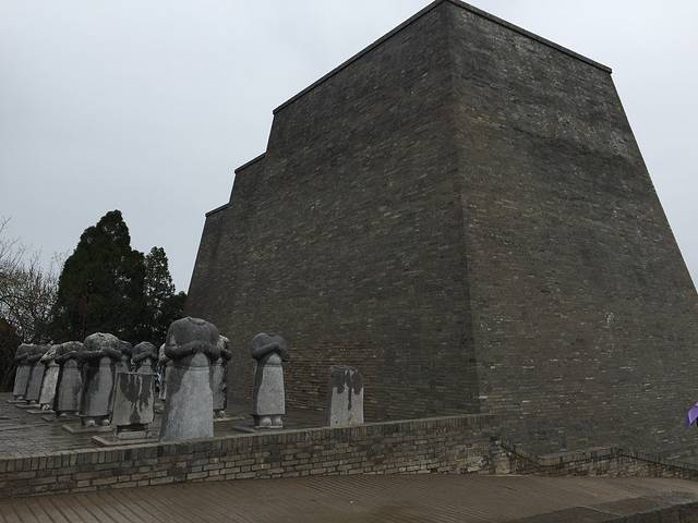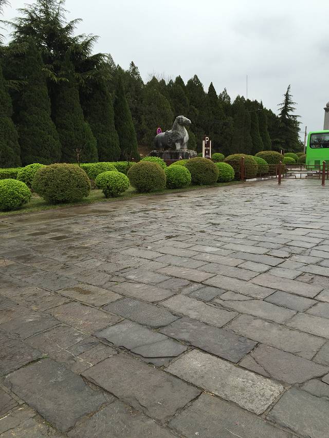 在淘宝的一家旅行社报了西线一日游,景点有乾陵和法门寺。昨天天气晴好,还盼着今天也是个好天气呢!结果一大早就一直下着小雨,天气预报真准啊!西安的旅游业已经发展的相当成熟,早上七点到八点之间,会有大巴车到酒店接你,统一拉到散客集散中心。然后会根据你去的线路登上不同的大巴车。今天是清明节的最后一天,去西线一日游的游客不是很多。乾陵据西安90km,我们大概10点多就到了。导游是个年轻的小伙,领着我们讲解了一番。乾陵是唐高宗李治和武则天的合葬墓。特别说一下西安这片土地埋葬了很多皇帝,都没有开挖的,你所看到了就是一座山而已。所以建议去一个就行,去哪个随你的心情。乾陵还是比较壮观的,还有两个陪葬墓懿德太子墓和永泰公主墓。这两个陪葬墓已经开挖了。乾陵的票价120元。
