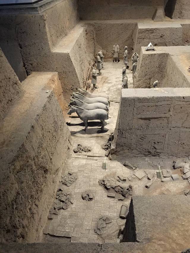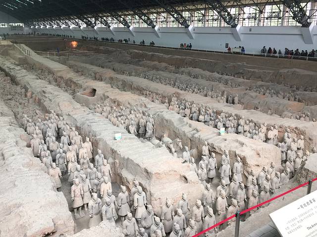 昨天的一日游很成功,今天图省事也报了一日游。一定要提前一天报团。早上还是七点多来酒店接我们,到集散中心换车。今天小长假结束了,人明显见少,大巴车都没坐满。八点三十分正式出发。今天的导游是个女孩,瘦小精干,嗓门大。一路给我们讲一些历史典故,我非常喜欢听。可能有部分游客在睡觉,导致导游不满呢!很厉害的小姑娘。我的行程是上午去秦始皇兵马俑博物馆,检票后,大概有十几分钟的路程可以到博物馆,也有电瓶车到达,5元每人。我认为没有那个必要坐电瓶车。这个兵马俑博物馆只是秦始皇陵的陪葬品。所以不建议合影。成人150元,14周岁以下免费。这个景区价格还是很人性化的。一共三个坑,1#坑最为震撼、2#坑还未开挖、3#坑比较小。2#坑出来门口售卖一本彩色图书和影碟,200元。由兵马俑的发现者签售。