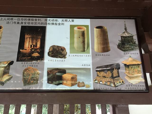 中午导游把我们带到了一个餐厅,自愿点餐。我是自带食品的,就坐在旁边的椅子上吃自带的食品。提供开水可以泡碗面。午餐后我们去往法门寺,一个小时的车程。下午2点到达法门寺,法门寺因为有释迦牟尼佛祖的指骨舍利而举世闻名。只在初一、十五、法定节假日可以供人瞻仰。我们有幸在清明节的最后一天瞻仰到了。可惜离的太远,根本看不清什么。法门寺景区很大,导游为了节省时间,都会要求乘坐电瓶车的,每人30元。儿童没有收费。景区大,但没什么东西。去的那天人也很少,各种巨型菩萨的塑像,很是震撼!都是镀金开光的,照相什么的请谨慎。门票120元。法门寺博物馆还是值得一看的,四个舍利的宝函都在其中。法门寺塔地宫,三个影骨舍利都在其中、还有重建的唐代地宫。值得一看。还有特别提醒大家的出去的时候要掌握好时间,因为电瓶车要等人的,还有就是出去有长长的商业街。所以必须在集合时间的前三十分钟就往外走。我们就因为不知道,耽误了大家的时间。17:15大巴开回西安,大概19:00回到了西安市内,我们来到了小六汤包,点了几笼包子,价格小贵。羊肉12元一笼,但只有6个。我看至少得吃5笼才行。八点多回到酒店,结束一天的行程。值得赞的是全程无购物。
