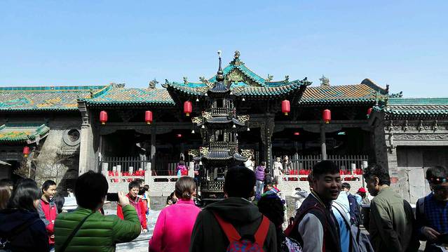 清明节,高速路车比往常多。。但是出了六环就好多了,路上大车比较多,但是都很规矩,小车走最内侧车道,一路除了山偶尔遇到隧道。。歇一歇开,大概下午1点多到乔家大院,下了高速不远就到了