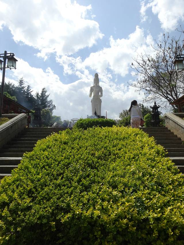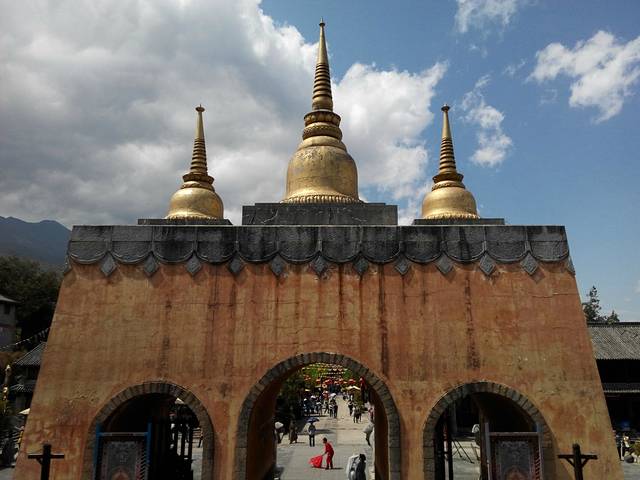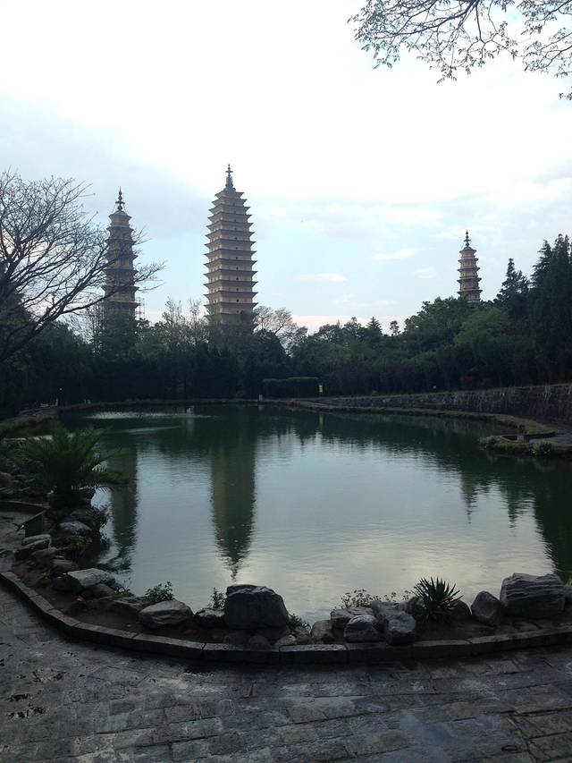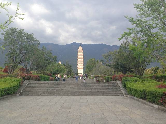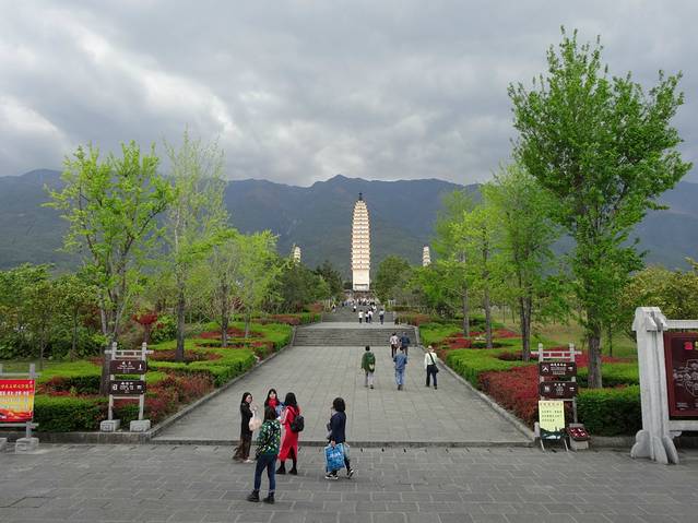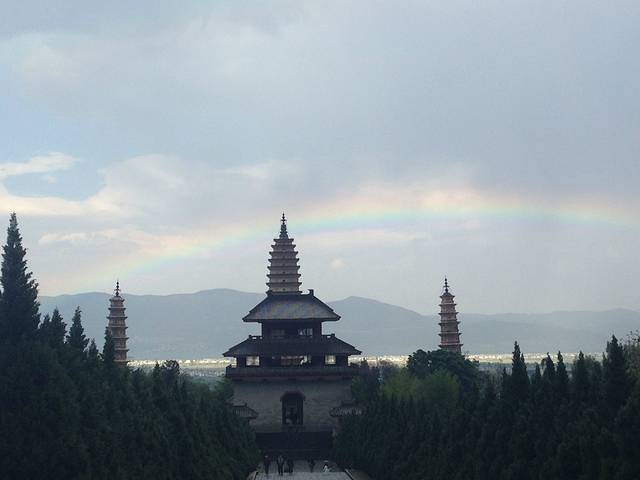 三塔是大理的标志,来大理这里必来。可是我们运气不好,从踏进景区的门,就间歇性的下雨,我们只能一边躲雨,一边游玩,当我们到达雨铜观音庙的时候,看到了彩虹,从洱海的北边跨到了南边,刚好从三塔上方跨过。