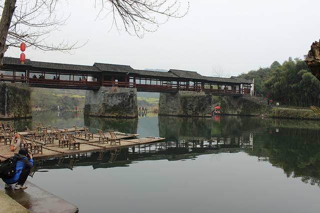 彩虹桥防洪体系的设计,是古代婺源人智慧的结晶,桥建在最宽的河面上流速最缓,冲击力最小,桥墩设计成半船形,分解洪水对桥墩的冲击力,墩与墩的距离,按河床流速设计,流速越大,墩距越宽,有利泄洪;桥下游五十米地方,建一石坝,抬高水位,缓解流速,保护古桥。
