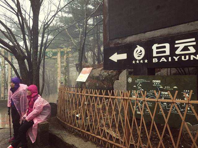 第一站是光明顶,这位游客坐了好久。。。。。