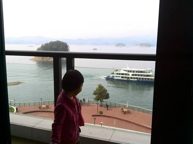 前往千岛湖景区:酒店离杭州汽车西站较近,前往动物园站,乘开往蒋村公交中心方向的194路在古荡站下车(8站),转车B支2路或213路在汽车西站下车(4站),就在一个站台换乘公交,下车后可以看见售票处,到千岛湖车票60元/人,好像是20分钟一班,走高速2小时就到千岛湖客运站了,还的继续打车或换乘K004路前往千岛湖镇。我们是打车42元到达的梅地亚君澜度假酒店,酒店距离码头很近可步行10分钟到达。建议大家如果住在码头附近用餐可以选择去镇上的千岛湖广场附近就餐,价位实惠。如果住在镇上就得早起乘车到湖边码头座船。千岛湖有中心湖区:乘船可游梅峰岛、渔乐岛、龙山岛或月光岛,游玩4个小时,早晨8:00和10:00分别开船(4选3);东南湖区码头乘船可游黄山尖(可看见“公”字)、天池岛。早晨8:30、9:30、10:30、11:30、13:30分别开船,游玩3小时,门票150元,船票65元。也可以在网上团购省10元。大家一定要安排好时间,尽量宽裕些。到达酒店后入住先前预定的豪华湖景房,真是太美了,所有的一切。这个季节500多元的价格,真心的不错。房间的舒适,观景台的位置正对中心,酒店还有免费的早餐提供,免费的游泳池(室内和室外),免费的儿童游乐场(室内和室外),这些一一享受。酒店也提供单骑,租金60元/小时,有些小贵,但是骑完也就花了1.5小时,90元的租金。在别处专门租自行车的地方是80元半天。出酒店有一条自行车专用道可以骑车观景,往返用了1.5小时。这也是旅行的另一种享受。下午前往镇上的千岛湖广场附近用晚餐,吃的是有机鱼头套餐,这家店搞活动128元,88元套餐,还不错。下面有图可供参考。晚上回到酒店再享受室内游泳馆,人很少,真好。