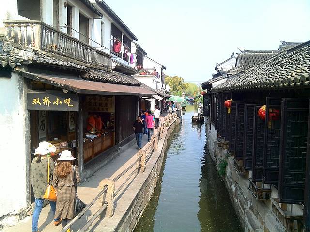 在杭州火车东站座动车前往苏州,杭州站离繁花似锦酒店比较近,东站有些远了,去程花了1小时的时间到火车站东站。在动物园站有37路公交车直达,等的时间较长,有可以座504路、287路、4路区间在龙翔桥站下车(7站),再做地铁1号线,火车东站下车(6站)。先前我买的票到苏州站,后来上车才知道昆山南也可以去周庄的,座公交要倒几次车,打车是100元,在昆山南下的车打车到的周庄古镇。友情提示:苏州站下车也可以的,汽车站就在火车站旁边,座汽车前往周庄16元/人,1小时路程。我是为了赶时间所以就提前下火车了。周庄住的是古韵风客栈,老板人很好,房间是临河的,时不时可以听见摇船人的歌声。老板娘给了我家孩子几个自己做的青团,味道很清香,不错。客栈的位置属于周庄的中心,进景区过一个桥就到了,很近的。周庄也不大,半天就可以转完。我们去了双桥,张厅,沈厅,景区的门票是100元,(提前在网上购的话才67元,很划算的,当天不能预订当天的票),我是到了景区买的100元的票很是伤心呀。狐狸家的酸奶这里也有,味道不错,猫的天空书城也有的。在景区门口附近有几家超市可以选购,比较方便,还有一家永和豆浆可以吃早餐的地方。景区内也有卖早餐的。周庄的汽车站离景区还是有些远的,客栈老板娘送站到汽车站。