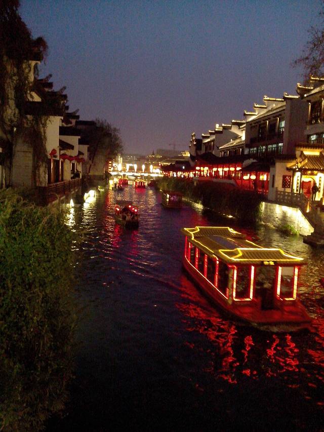 十里秦淮。夫子庙-秦淮河一带夜景最美,晚上从秦淮河离开后我们就回到了宾馆,也就结束了一天的南京之行。比之石家庄,南京空气好自不必说,更难得的是安静,很安静。感觉南京车不多,人也不算拥挤,物价不高,人也很好。很喜欢南京,喜欢到觉得这儿鸟叫的都比别处好听,空气里都是静谧幸福的味道。