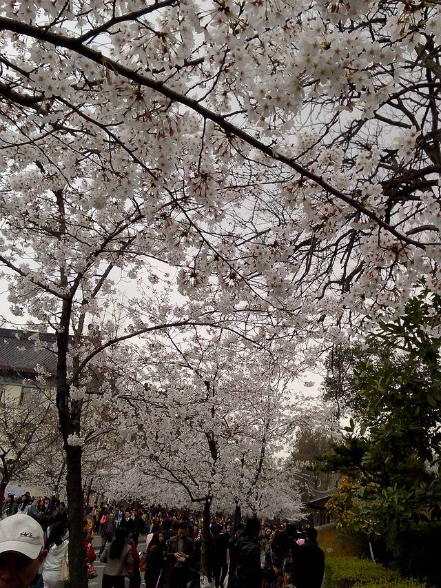 从玄武湖出来到鸡鸣寺 一整条街都是樱花。我们去的时候樱花开得正好,只是游人太多,未免失了情致。如果人少时能在这条街上细细赏樱,那真是一件美事了~~~