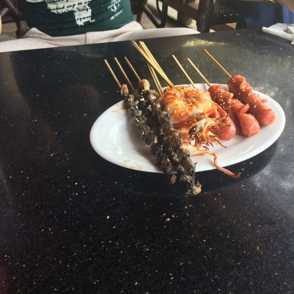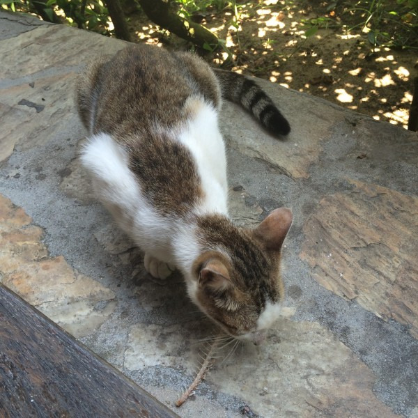午饭在一家串吧解决 鲜榨果汁和烤串 400+ 有些贵...但是遇到了猫 于是心花怒放 开始喂猫