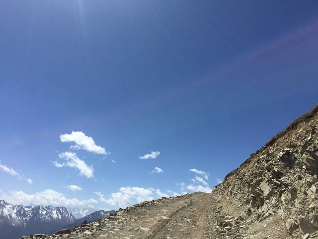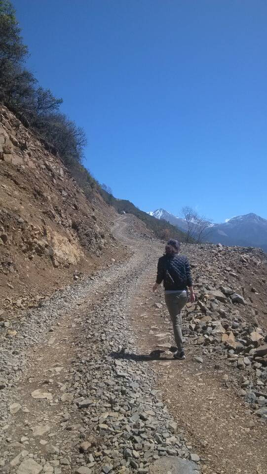 路况越来越差,急弯、陡坡、碎石路(石头不小,菱角尖锐,极易爆胎)。所以我和郭决定下车捡石头(可以减少车子的载重,使得底盘抬高)。可是,当我们下车后,宋就一直开车往前走,丝毫没有等我们的意思,看见路况越来越好,车子越开越远,终于看不见了。心想“这小子不会整我们吧,该不会真的让我们徒步上山吧!一会儿下山的时候你可千万不要给我机会让你下车,要不然,嘿嘿,你自己走下去吧!!!”