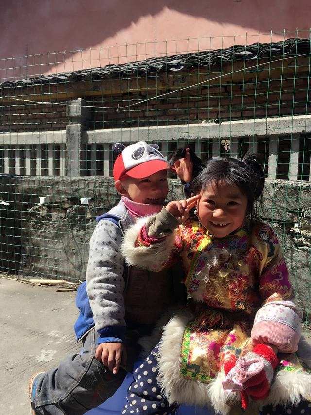 11点左右,我们经过硗碛乡,路过神木垒的岔路口,到达了达瓦更扎山脚下。这一路上岔路不少,还问了好几次路的。而且每次问路完毕后,都会得到热心人的嘱咐“你们这个车上不去的”。哎!我想听到肯定啊!心里想:管他的,实在要是上不了,我们就掉头,然后徒步上。但是,不管怎么样,饥肠辘辘的我们需要觅食啊!!我们去了一家叫达瓦山庄的藏家乐,3个人煮了45个饺子(宋20、郭15、小女子我10个)。在等饺子的时候,我们坐在蓝天白云下,晒太阳,发呆!两个小孩冲着我们傻笑!