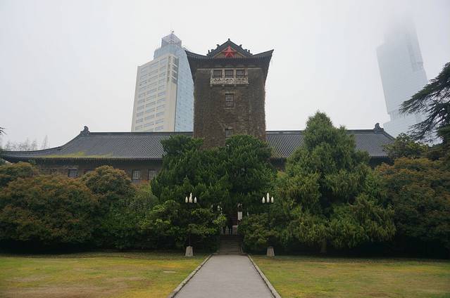 因为要保证小孩子的午睡,我们吃完大排档后就回酒店休息,下午三点多才出发去南京大学,参观了南京大学的礼堂,数学系楼等。从南京大学广州路门出来,右手边有家卖脆皮火烧的,个人觉得超级好吃,后来发现街头还挺多卖脆皮火烧的,包括狮子桥路都有一家,顺着广州路一直走就到达先锋书店。南京大学广州路门口吃的很多,随便都可以填饱肚子。