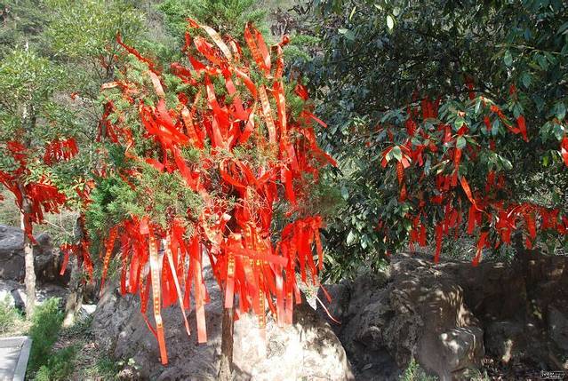 上完香我们随着人类拿来红丝带,传说将这红丝带系在这些许愿树上我们的愿望就能实现。我们带着小朋友,每个人准备了一条红绳子,抱起小朋友让他们自己去系。当我们将愿望系上后,我们心里有一种沉甸甸的满足感,这也许就是神奇之处吧。