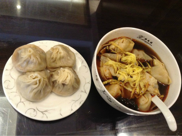 小笼包是8元4只,我们还点了一碗辣油馄饨,和朋友分着吃