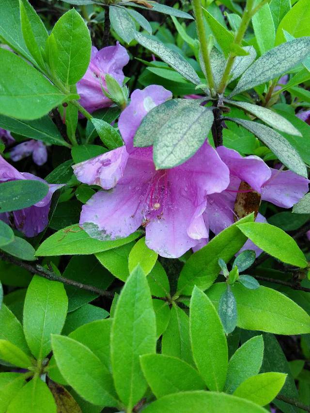 杜鹃花里面的蛛丝勾连起晶莹的露珠