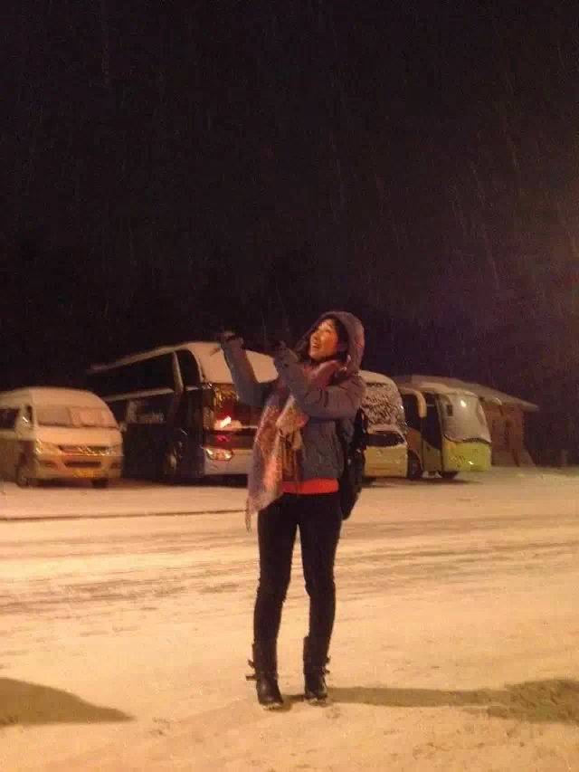 今天又是早机,7点半的飞机,所以4点半又得爬起来,悲催的是飞机还要经停大连,去到通化都是下午1点的时候,通化机场真的狠小,都比不过我们一个客运站。刚下飞机拿到行李我们就开始换装备,其实就是拿羽绒出来穿吧,刚下飞机是零下5度,即使穿着平常的靴子、厚一点的裤子,也不觉得冷,可是我们真的好饿啊。导游接到我们之后,我们都说找吃的地方。结果车一直开开,吃饭都是下午2点多3点的事情了,吃晚饭又继续赶路,他们那边是4点半就开始天黑,我们这边是什么概念。结果一路上都是在路,去到长白山镇上都是晚上8点多的事情,办理入住,继续吃饭。吃晚饭洗洗睡,开始明天的行程。吃晚饭回来刚好碰上下小雪。一天就是在路上渡过