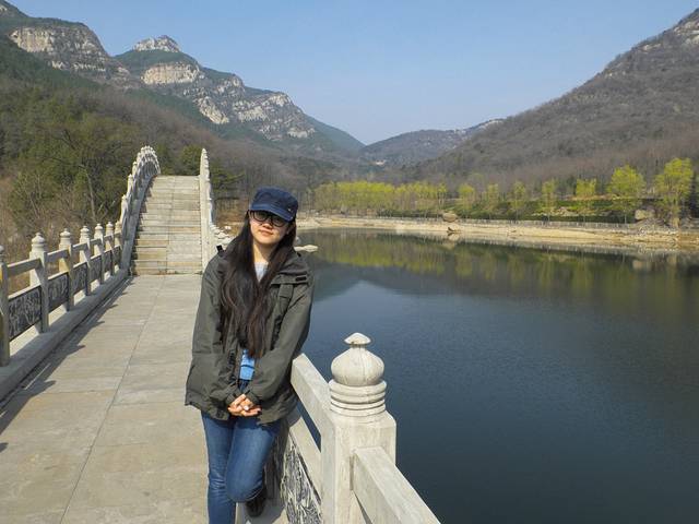 上山长路漫漫,走走歇歇倒也不觉得累,感觉山上还是蛮冷的,并且风大。恐高症的阿晓勉强摆个姿势就匆匆拉着我下山了。。。。。话说在路上碰到了一只不敢下山的哈士奇,后来他主人实在是劝不动,就给抱下山了。。。抱下山。。。抱。。。。