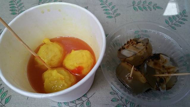 住的地儿门口有卖小吃的,随便吃点就赶紧走了,确实不早啦~~鱼丸,冻竹笋。我觉着都不错,是一老奶奶自己家做的~