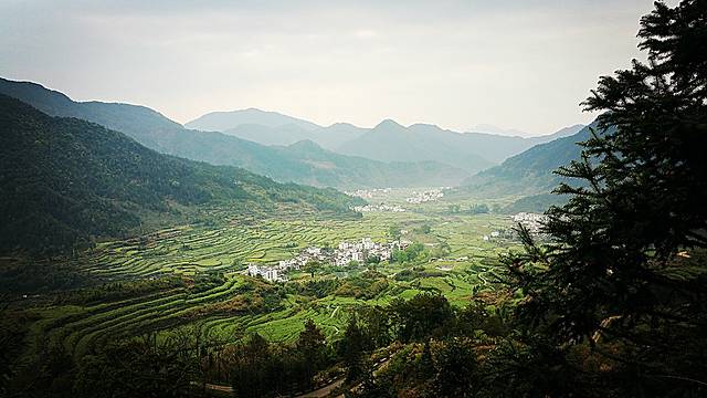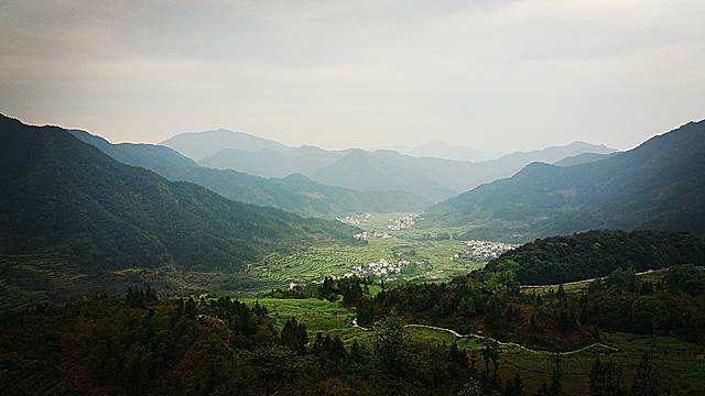 江岭最高峰俯瞰。唉,早一个星期的话,是油菜花海。。不过现在也很美