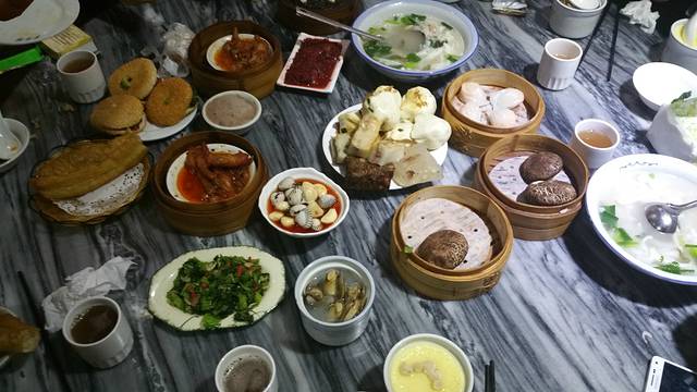 好多小吃,我都叫不上名字,但都很好吃。看见照片右边的蘑菇了吗,他不是蘑菇,是肉包子,外面那是豆沙,哈,多像蘑菇~~