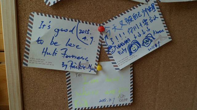 有個像諮詢臺的地方可以免費留言寫在便條紙,然後釘在板上。