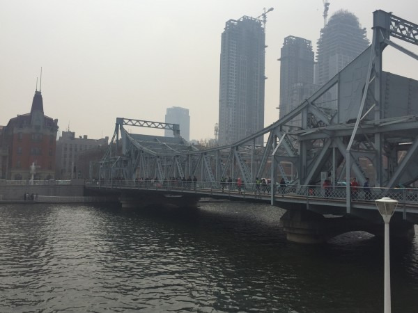 上午从北京南站乘城际快轨驶向天津,竟然只要半个小时就到了天津站,是我从学校到北京南站时间的1/3,再次感叹北京这个摊大饼的城市从天津站出来就是海河广场了,一般大家都会到标志性城雕建筑世纪钟下照相。从世纪钟正前方的解放桥(万国桥,风格独特,据说是埃菲尔亲自设计,用的也是和埃菲尔铁塔一样的钢材,是许多电视剧的取景地)走过海河(对,其实海河比我们想象中要窄得多)便可以到达还未建设完毕的津湾广场。欧式风情的建筑群,虽然没有建设完毕但也可以走走看看,那里有美食攻略书上提及过的一些餐厅如“城市青年”,消费和环境都还过得去,但这家店主要是吃北京菜的,所以北京的朋友们就不要凑热闹了。
