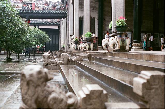 刚进陈家祠就下起了暴雨,在回廊里看风景等雨停。