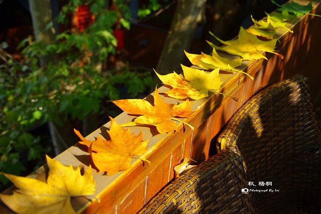 昨夜夜静花寒,秋风乍起,梧桐飘散。地板、藤椅、石桌、阳台、屋顶、房前、树下,满院皆枯黄。清晨的光束从屋顶树缝间斜洒过来,照着遗落一地的梧桐树叶,呈现从鲜黄、橘黄、金黄、铭黄、米黄、暗黄到褐黄的交织排列,甚是好看。落红化作春泥,落叶懂得归根,这是生命精彩的轮回,只是不知今夕何夕,秋天突然长上了叶茎。或许只有等到风起霎那,等到痛的时候,才明白生命已从新生到枯落,爱情已从枯落到新生。